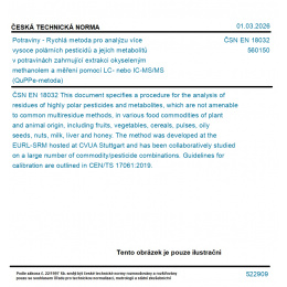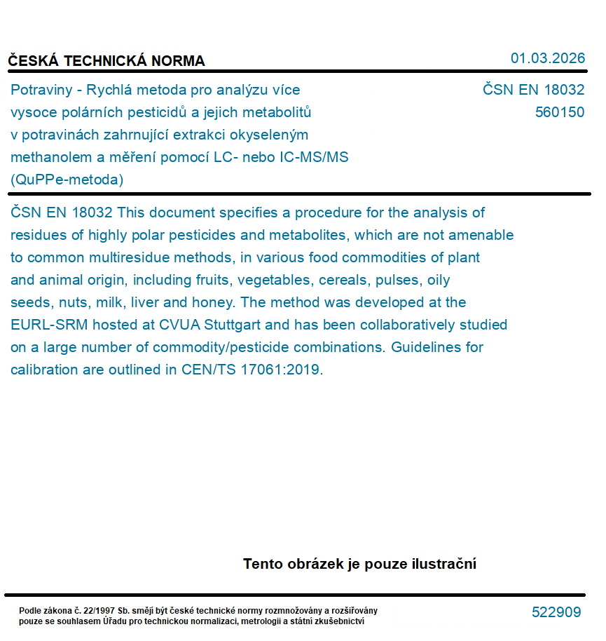 Potraviny - Rychlá metoda pro analýzu více vysoce polárních pesticidů a jejich metabolitů v potravinách zahrnující extrakci okyseleným methanolem a měření pomocí LC- nebo IC-MS/MS (QuPPe-metoda)