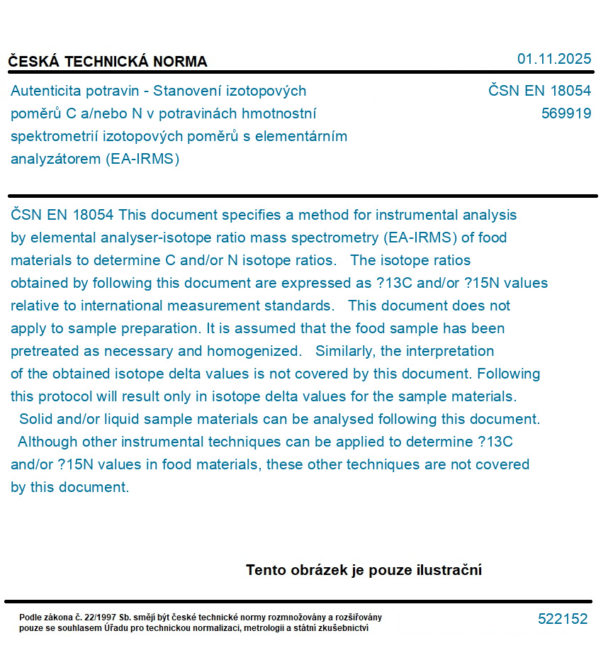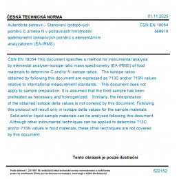 This document specifies a method for instrumental analysis by elemental analyser-isotope ratio mass spectrometry (EA-IRMS) of food materials to determine C and/or N isotope ratios. The isotope ratios obtained by following this document are expressed as ?13C and/or ?15N values relative to international measurement standards. This document does not apply to sample preparation. It is assumed that the food sample has been pretreated as necessary and homogenized. Similarly, the interpretation of the obtained isotope delta values is not covered by this document. Following this protocol will result only in isotope delta values for the sample materials. Solid and/or liquid sample materials can be analysed following this document. Although other instrumental techniques can be applied to determine ?13C and/or ?15N values in food materials, these other techniques are not covered by this document.