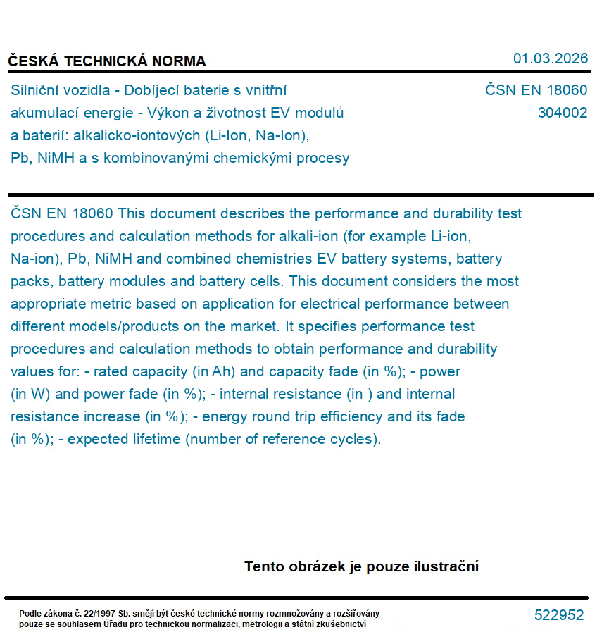 Silniční vozidla - Dobíjecí baterie s vnitřní akumulací energie - Výkon a životnost EV modulů a baterií: alkalicko-iontových (Li-Ion, Na-Ion), Pb, NiMH a s kombinovanými chemickými procesy