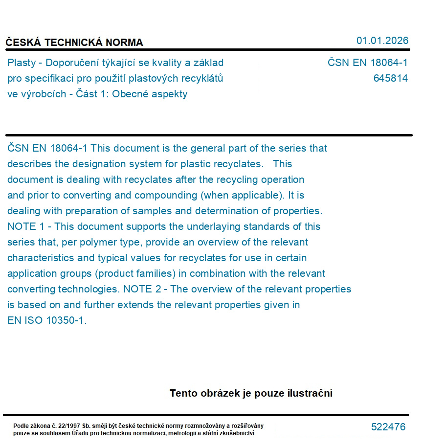 This document is the general part of the series that describes the designation system for plastic recyclates. This document is dealing with recyclates after the recycling operation and prior to converting and compounding (when applicable). It is dealing with preparation of samples and determination of properties. NOTE 1 - This document supports the underlaying standards of this series that, per polymer type, provide an overview of the relevant characteristics and typical values for recyclates for use in certain application groups (product families) in combination with the relevant converting technologies. NOTE 2 - The overview of the relevant properties is based on and further extends the relevant properties given in EN ISO 10350-1.