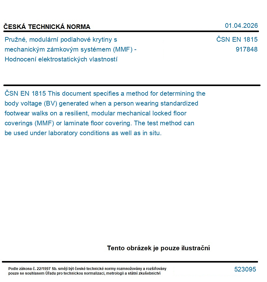 Pružné, modulární podlahové krytiny s mechanickým zámkovým systémem (MMF) - Hodnocení elektrostatických vlastností