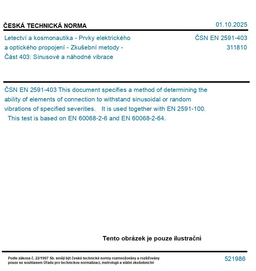 Letectví a kosmonautika - Prvky elektrického a optického propojení - Zkušební metody - Část 403: Sinusové a náhodné vibrace
