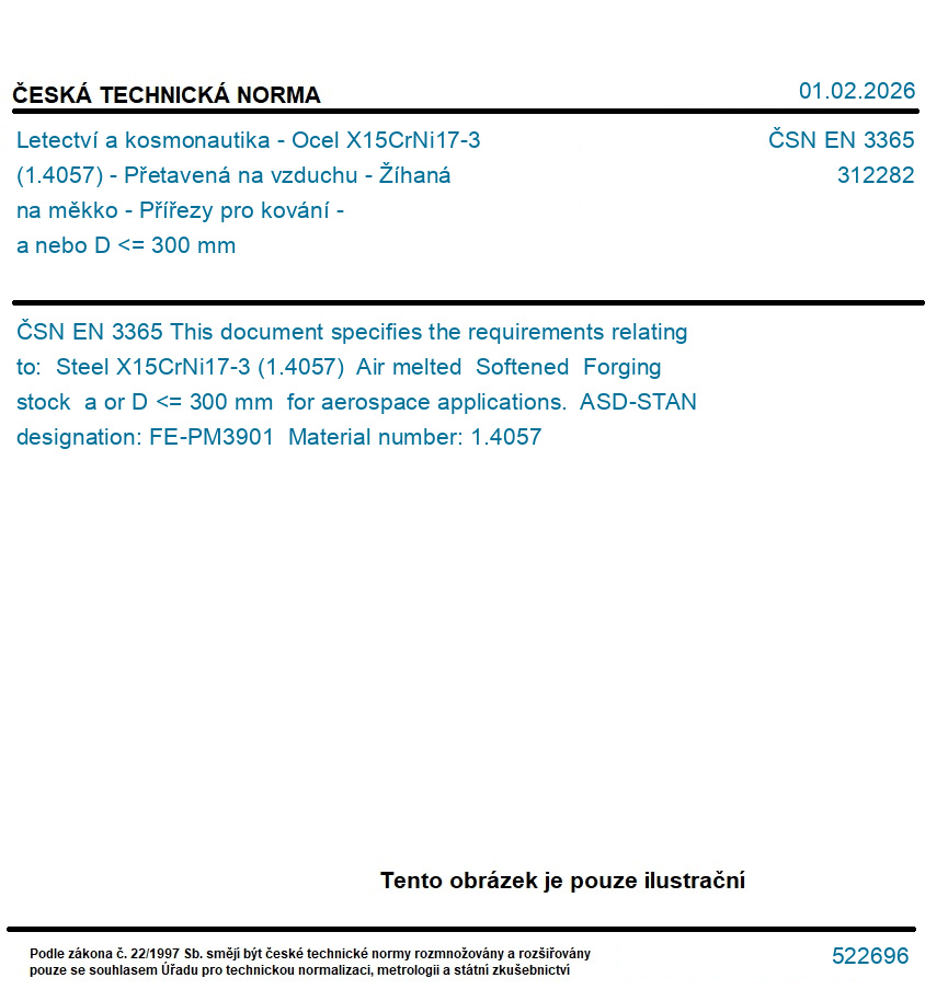 Letectví a kosmonautika - Ocel X15CrNi17-3 (1.4057) - Přetavená na vzduchu - Žíhaná na měkko - Přířezy pro kování - a nebo D <= 300 mm