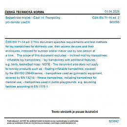 S účinností od 2026-10-31 se nahrazuje ČSN EN 71-14 (94 3095) z listopadu 2019, která do uvedeného data platí souběžně s touto normou.