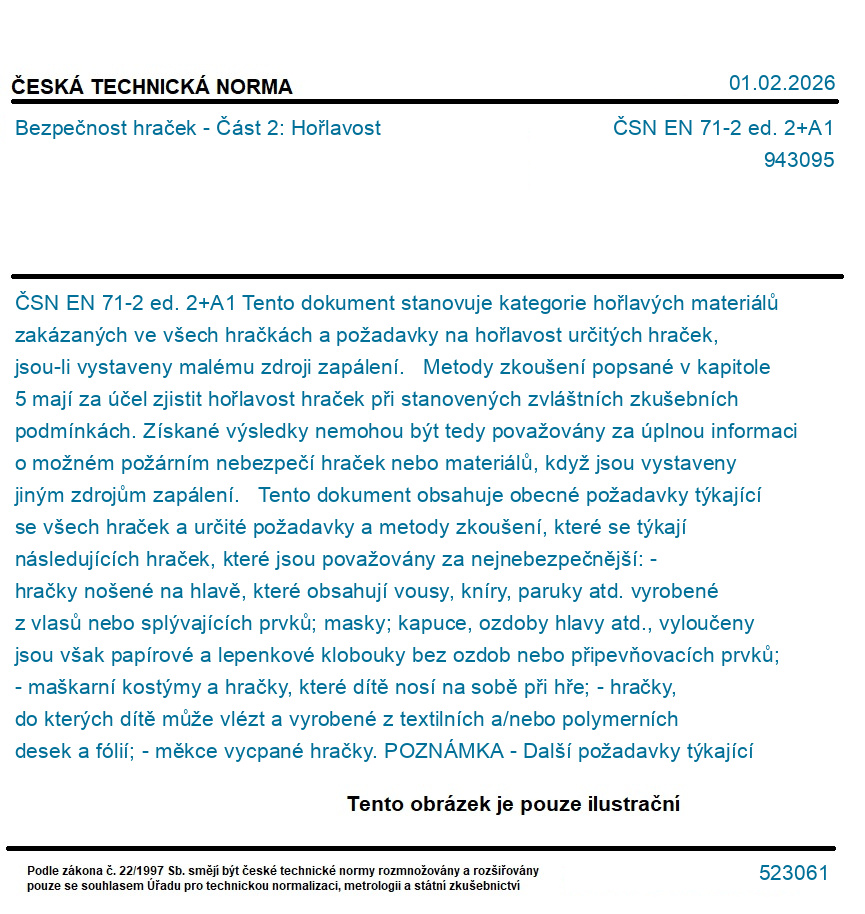 | Označení normy: | ČSN EN 71-2 ed. 2+A1 |