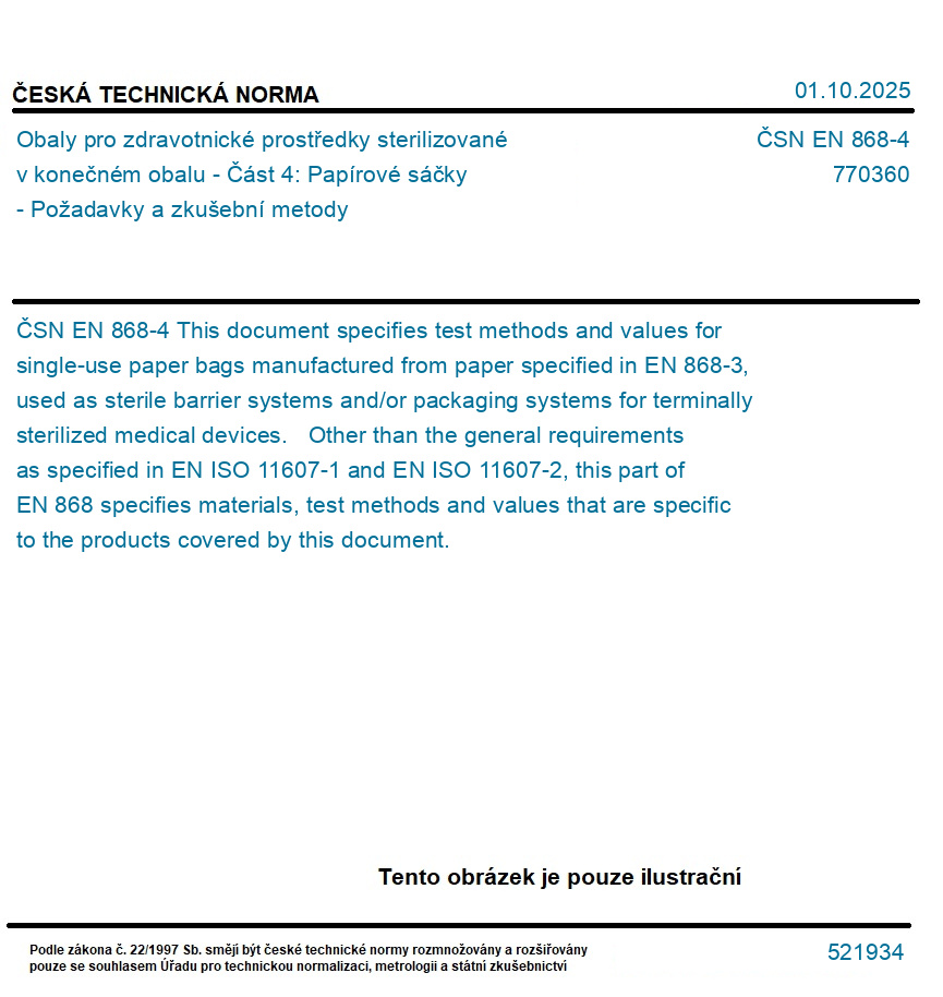 Obaly pro zdravotnické prostředky sterilizované v konečném obalu - Část 4: Papírové sáčky - Požadavky a zkušební metody