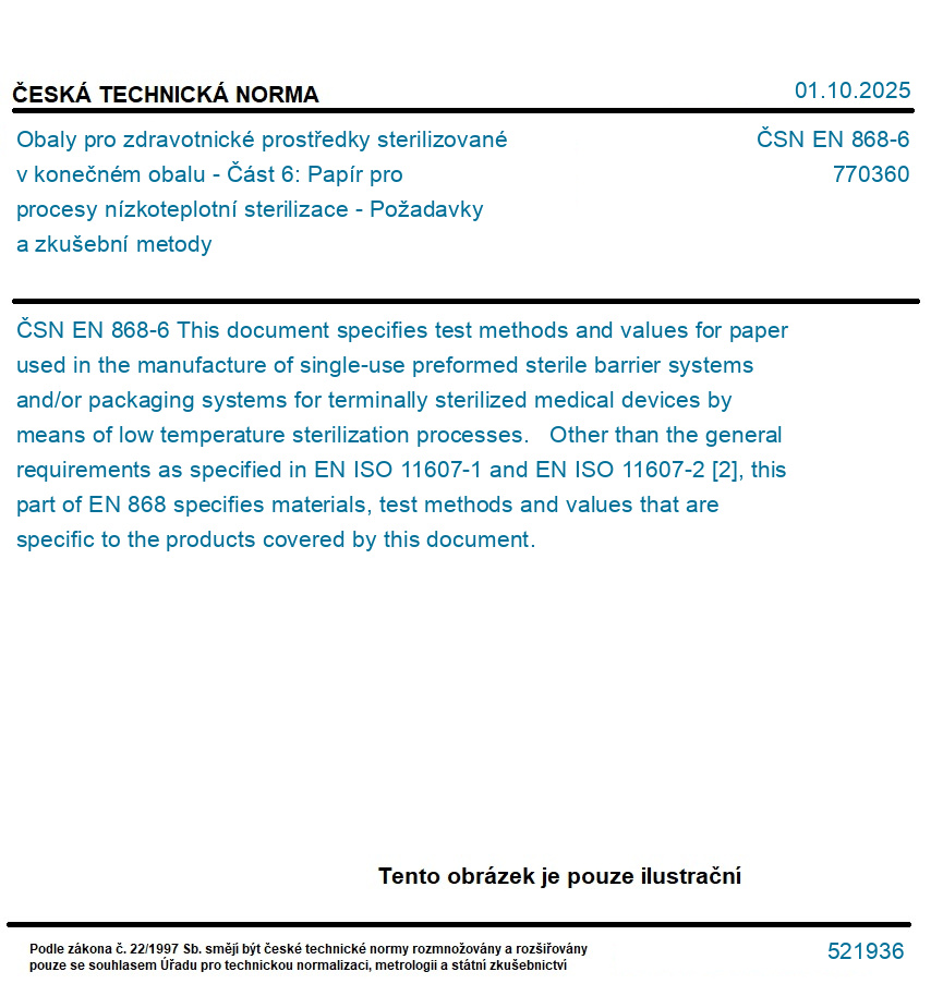 Obaly pro zdravotnické prostředky sterilizované v konečném obalu - Část 6: Papír pro procesy nízkoteplotní sterilizace - Požadavky a zkušební metody