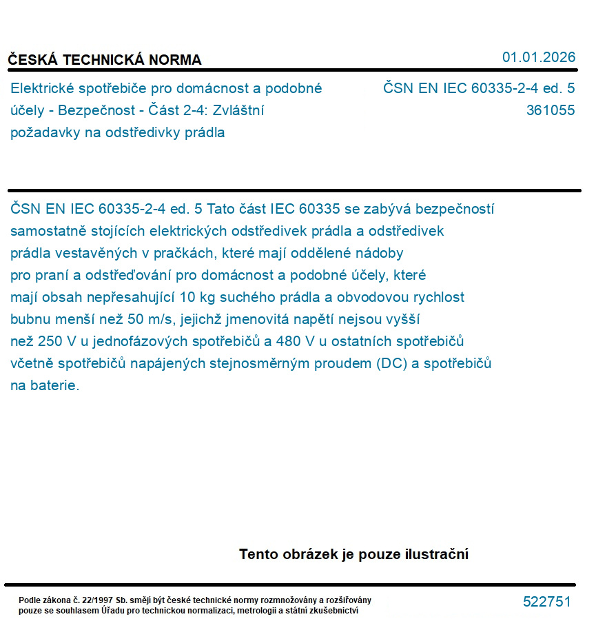 | Označení normy: | ČSN EN IEC 60335-2-4 ed. 5 |