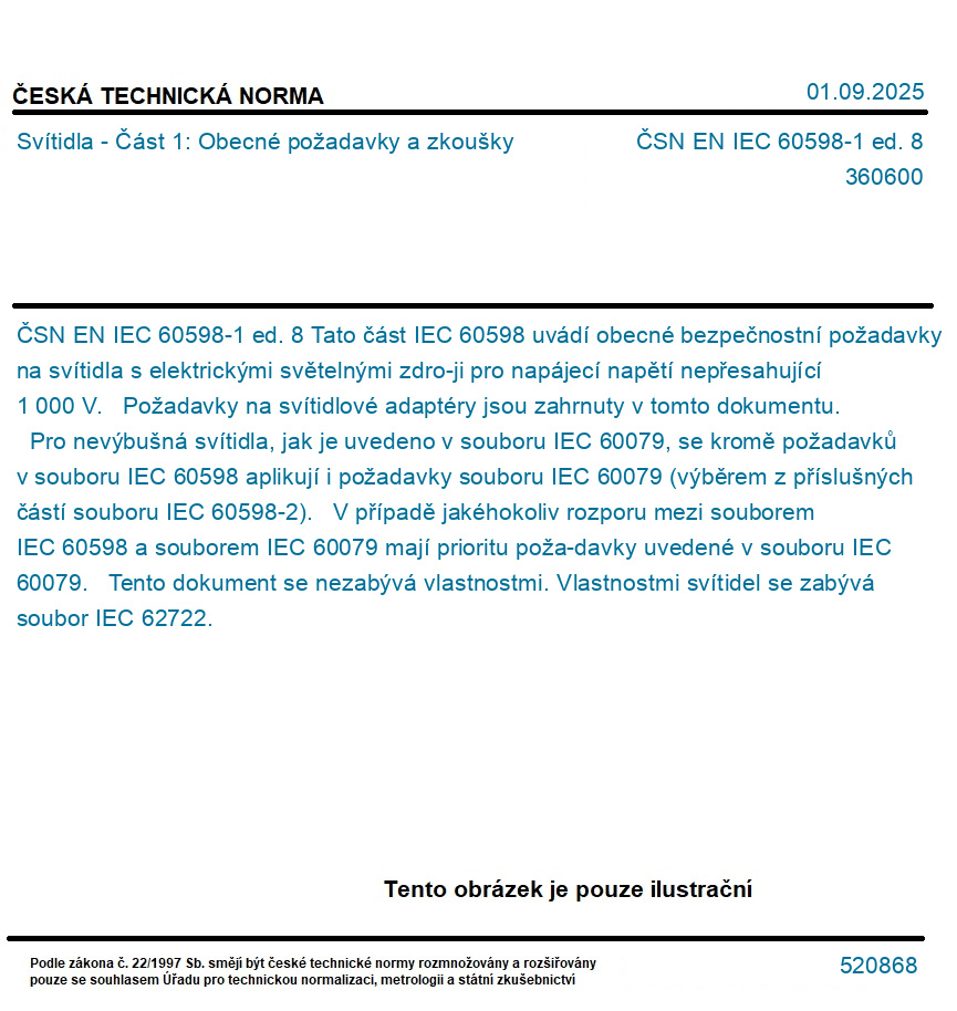 Označení normy: | ČSN EN IEC 60598-1 ed. 8 |