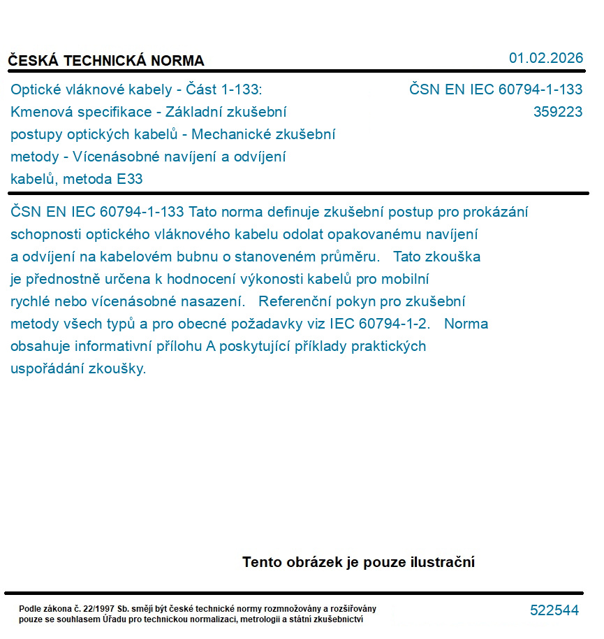 | Označení normy: | ČSN EN IEC 60794-1-133 |