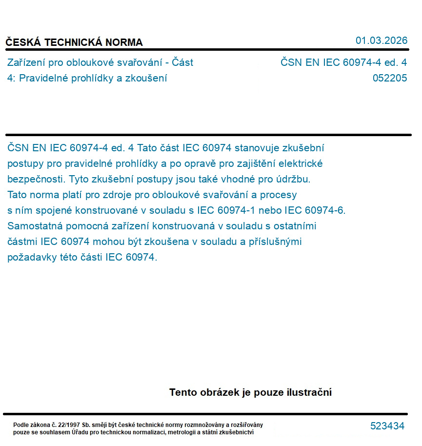 | Označení normy: | ČSN EN IEC 60974-4 ed. 4 |