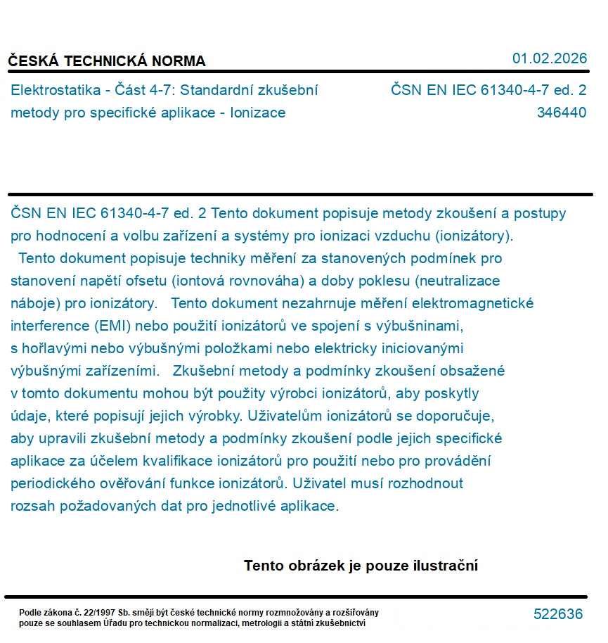 | Označení normy: | ČSN EN IEC 61340-4-7 ed. 2 |