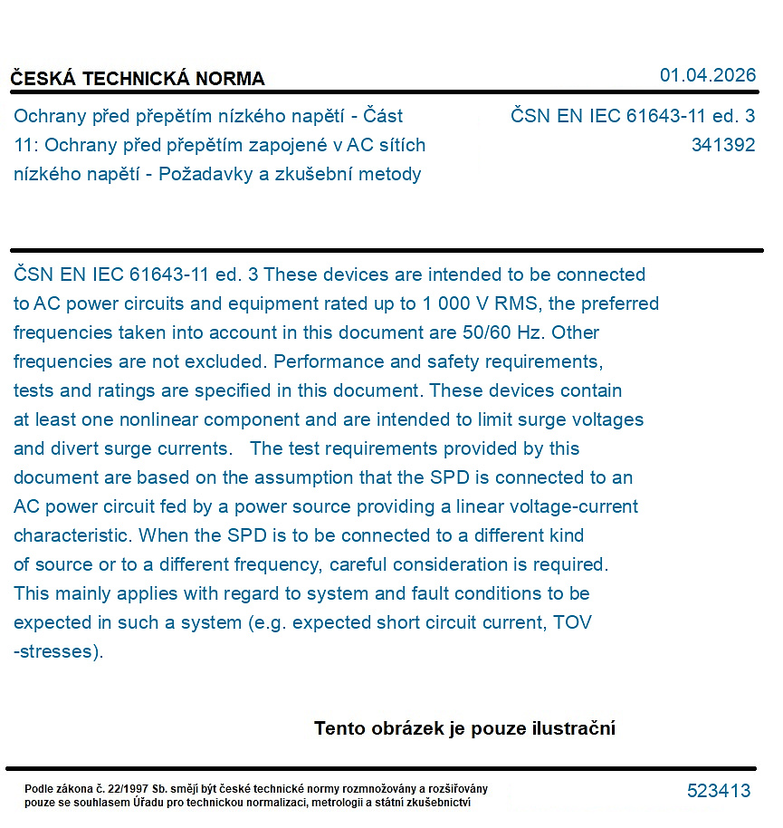 | Označení normy: | ČSN EN IEC 61643-11 ed. 3 |