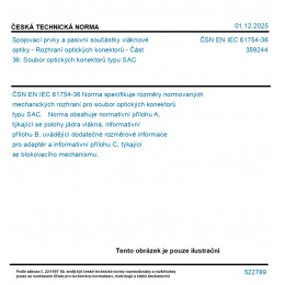 >ČSN EN IEC 61754-36 - Spojovací prvky a pasivní součástky vláknové optiky - Rozhraní optických konektorů - Část 36: Soubor optických konektorů typu SAC