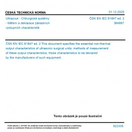 >ČSN EN IEC 61847 ed. 2 - Ultrazvuk - Chirurgické systémy - Měření a deklarace základních výstupních charakteristik