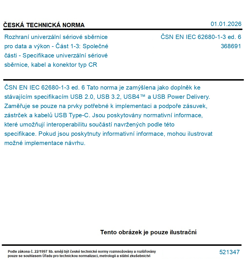 | Označení normy: | ČSN EN IEC 62680-1-3 ed. 6 |