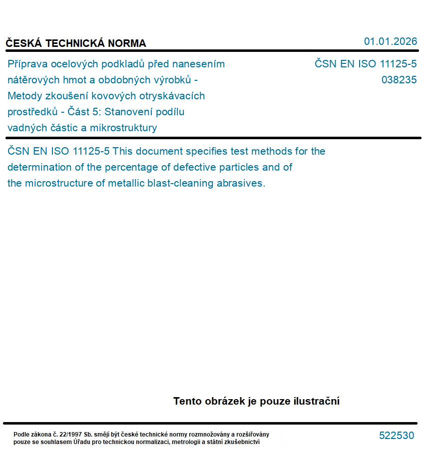 Příprava ocelových podkladů před nanesením nátěrových hmot a obdobných výrobků - Metody zkoušení kovových otryskávacích prostředků - Část 5: Stanovení podílu vadných částic a mikrostruktury