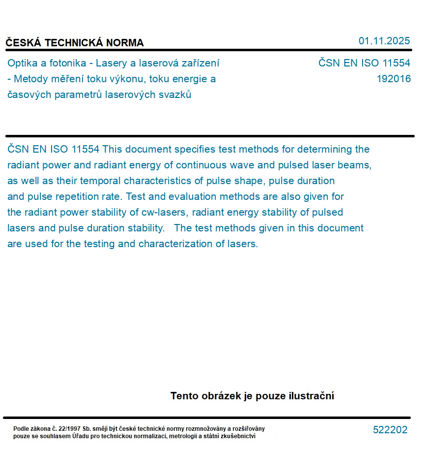 Optika a fotonika - Lasery a laserová zařízení - Metody měření toku výkonu, toku energie a časových parametrů laserových svazků