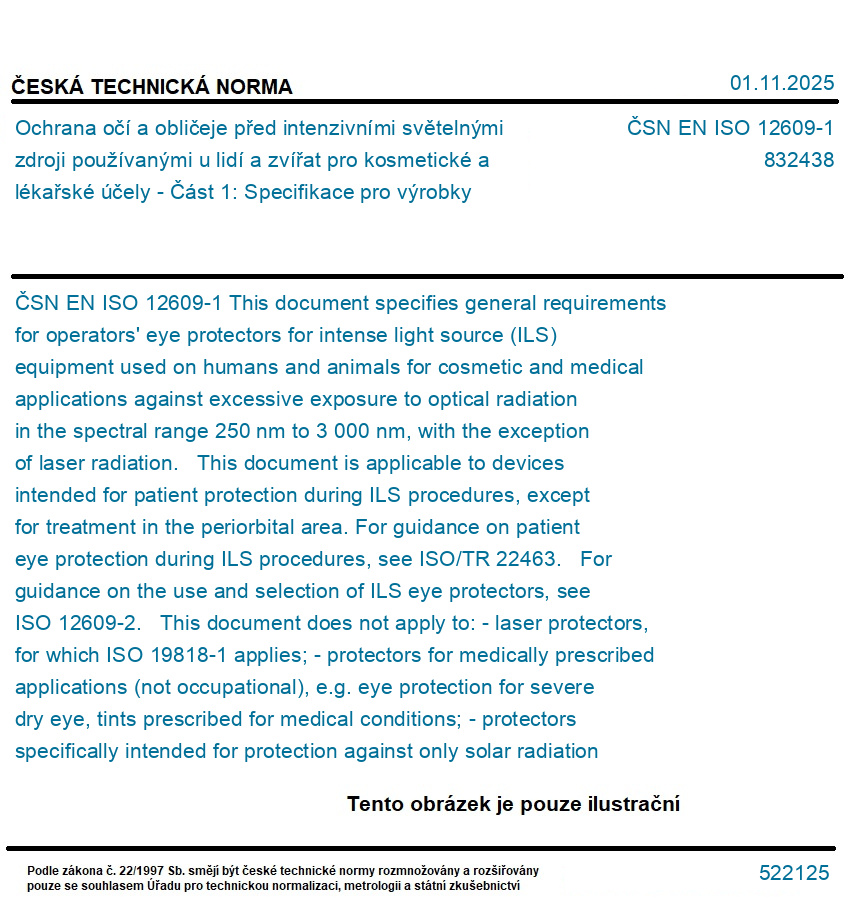 This document specifies general requirements for operators' eye protectors for intense light source (ILS) equipment used on humans and animals for cosmetic and medical applications against excessive exposure to optical radiation in the spectral range 250 nm to 3 000 nm, with the exception of laser radiation. This document is applicable to devices intended for patient protection during ILS procedures, except for treatment in the periorbital area. For guidance on patient eye protection during ILS procedures, see ISO/TR 22463. For guidance on the use and selection of ILS eye protectors, see ISO 12609-2. This document does not apply to: - laser protectors, for which ISO 19818-1 applies; - protectors for medically prescribed applications (not occupational), e.g. eye protection for severe dry eye, tints prescribed for medical conditions; - protectors specifically intended for protection against only solar radiation and used in non-occupational environments for which the ISO 12312 (all parts) applies; - protectors used with tanning equipment; - protectors intended to protect against ionizing radiation, e.g. X-rays, for which IEC 61331-3 applies.
