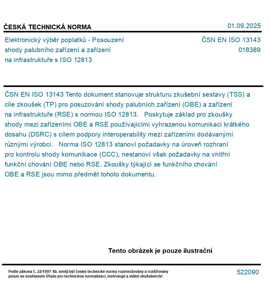 Elektronický výběr poplatků - Posouzení shody palubního zařízení a zařízení na infrastruktuře s ISO 12813