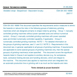 This document specifies the requirements and/or measures to eliminate the hazards or reduce the risks in the following groups of stationary grinding machines which are designed primarily to shape metal by grinding: - Group 1: manually controlled grinding machines without power operated axes and without numerical control; - Group 2: manually controlled grinding machines with power operated axes and limited numerically controlled capability, if applicable; - Group 3: numerically controlled grinding machines. NOTE 1 - For detailed information on the groups of grinding machines, see 3.1 and 3.2. NOTE 2 - Requirements in this document are, in general, applicable to all groups of grinding machines. If requirements are applicable to some special group(s) of grinding machines only, then the special group(s) of grinding machine(s) is/are specified. This document covers the significant hazards listed in Clause 4 and applies to ancillary devices (e.g. for workpieces, tools, workpiece holding devices and handling devices), which are integral to the machine. This document also applies to machines which are integrated into an automatic production line or grinding cell in as much as the hazards and risks arising are comparable to those of machines working separately. This document also includes in Clause 7 a minimum list of safety-relevant information which the manufacturer has to provide to the user. See also ISO 12100:2010, Figure 2, which illustrates the interaction of the manufacturer's and user's responsibility for the operational safety. The user's responsibility to identify specific hazards (e.g. fire and explosion) and reduce the associated risks can be critical (e.g. whether the central extraction system is working correctly). Where additional metalworking processes (e.g. milling, turning, laser processing) are involved, this document can be taken as a basis for safety requirements. Specific information on hazards arising from other metalworking processes are covered by other International Standards. This document applies to machines that are manufactured after the date of issue of this document. This document does not apply to stationary honing, polishing and belt grinding machines. This document does not apply to transportable motor-operated electric tools in accordance with IEC 61029-2-4 and IEC 61029-2-10.