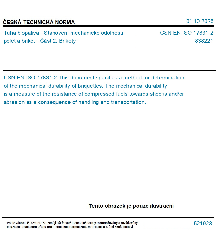 Tuhá biopaliva - Stanovení mechanické odolnosti pelet a briket - Část 2: Brikety