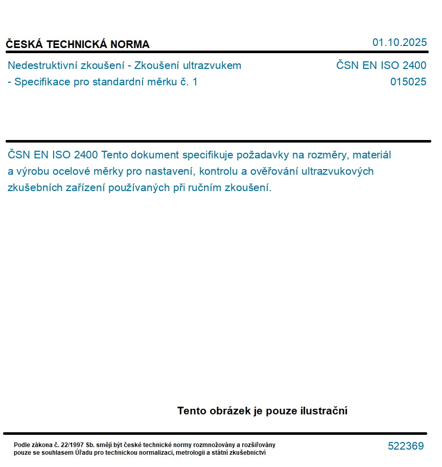 Nedestruktivní zkoušení - Zkoušení ultrazvukem - Specifikace pro standardní měrku č. 1