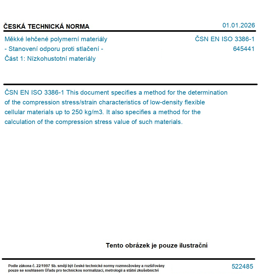 Měkké lehčené polymerní materiály - Stanovení odporu proti stlačení - Část 1: Nízkohustotní materiály