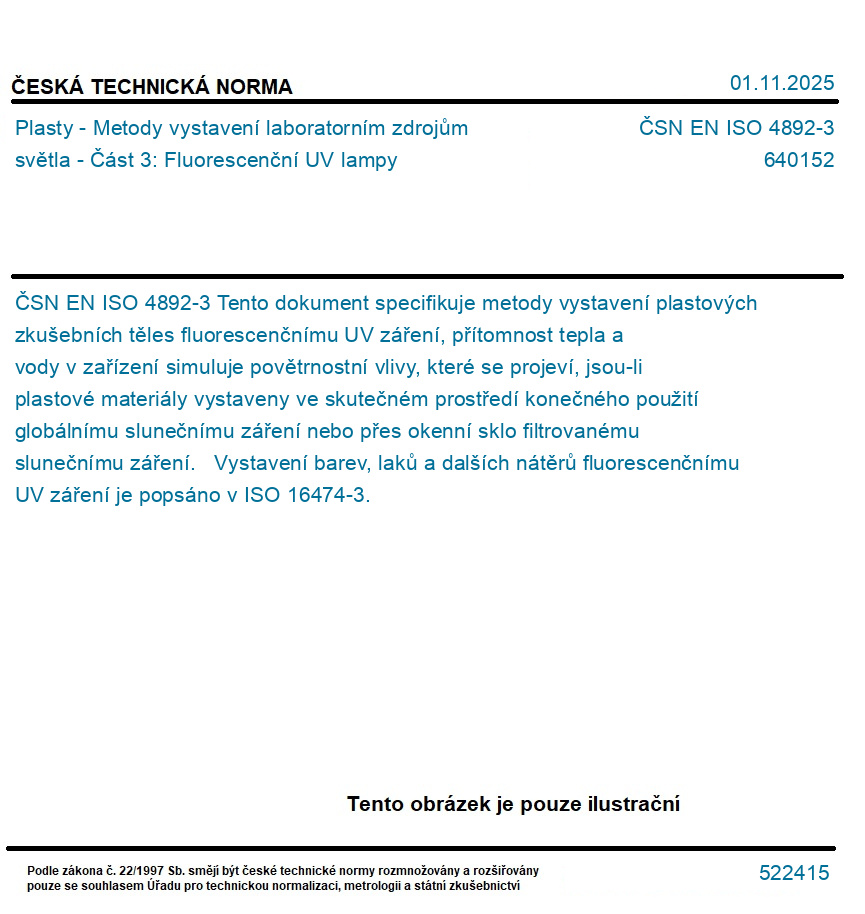 | Označení normy: | ČSN EN ISO 4892-3 |
