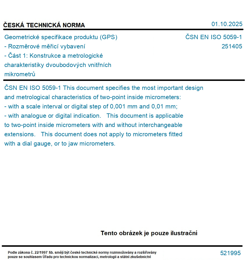Geometrické specifikace produktu (GPS) - Rozměrové měřicí vybavení - Část 1: Konstrukce a metrologické charakteristiky dvoubodových vnitřních mikrometrů