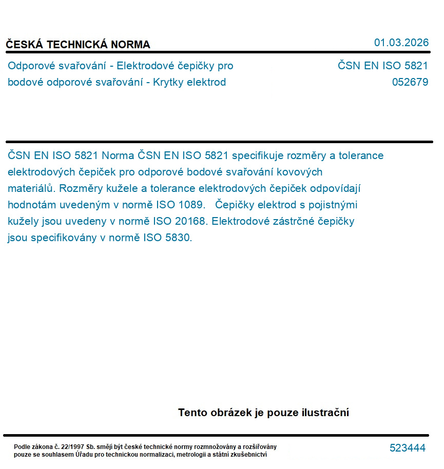 Odporové svařování - Elektrodové čepičky pro bodové odporové svařování - Krytky elektrod