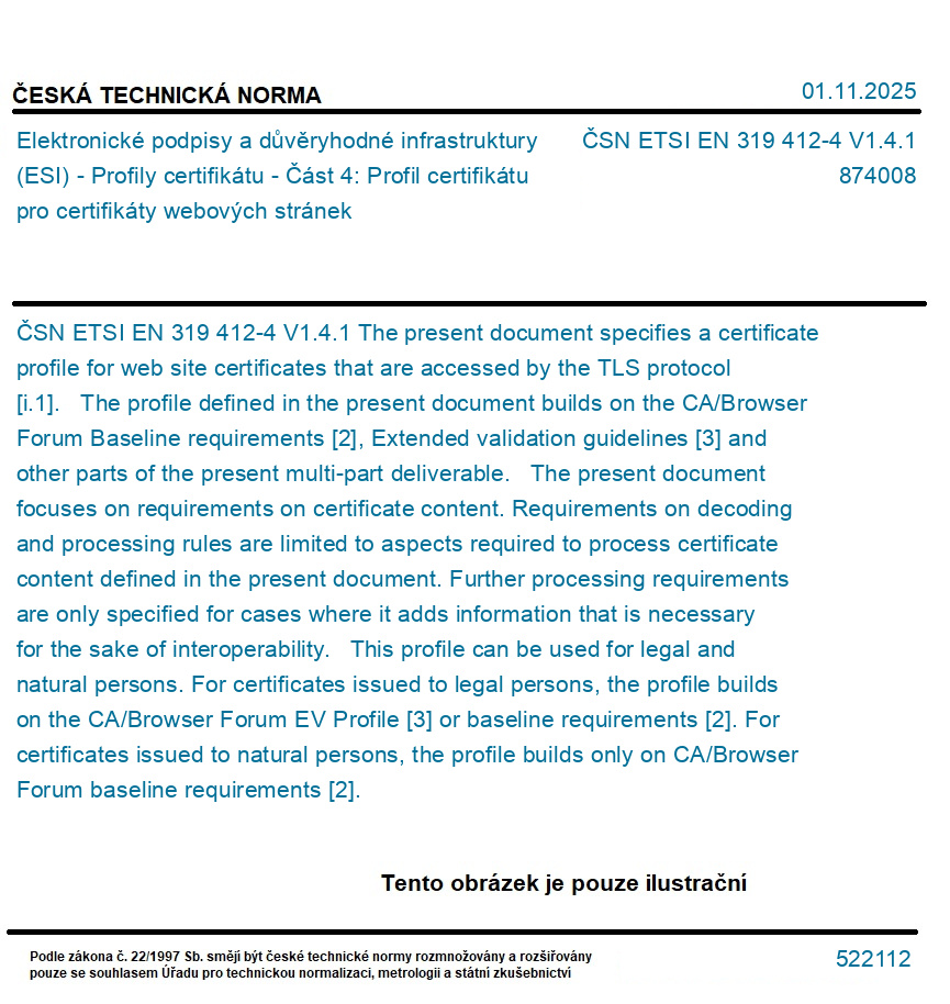 | Označení normy: | ČSN ETSI EN 319 412-4 V1.4.1 |