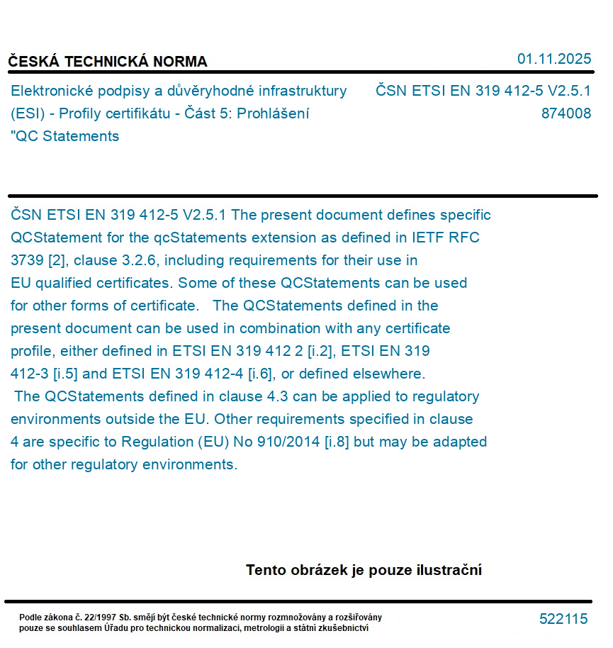 | Označení normy: | ČSN ETSI EN 319 412-5 V2.5.1 |
