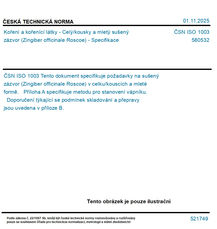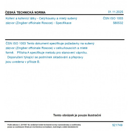Koření a kořenící látky - Celý/kousky a mletý sušený zázvor (Zingiber officinale Roscoe) - Specifikace