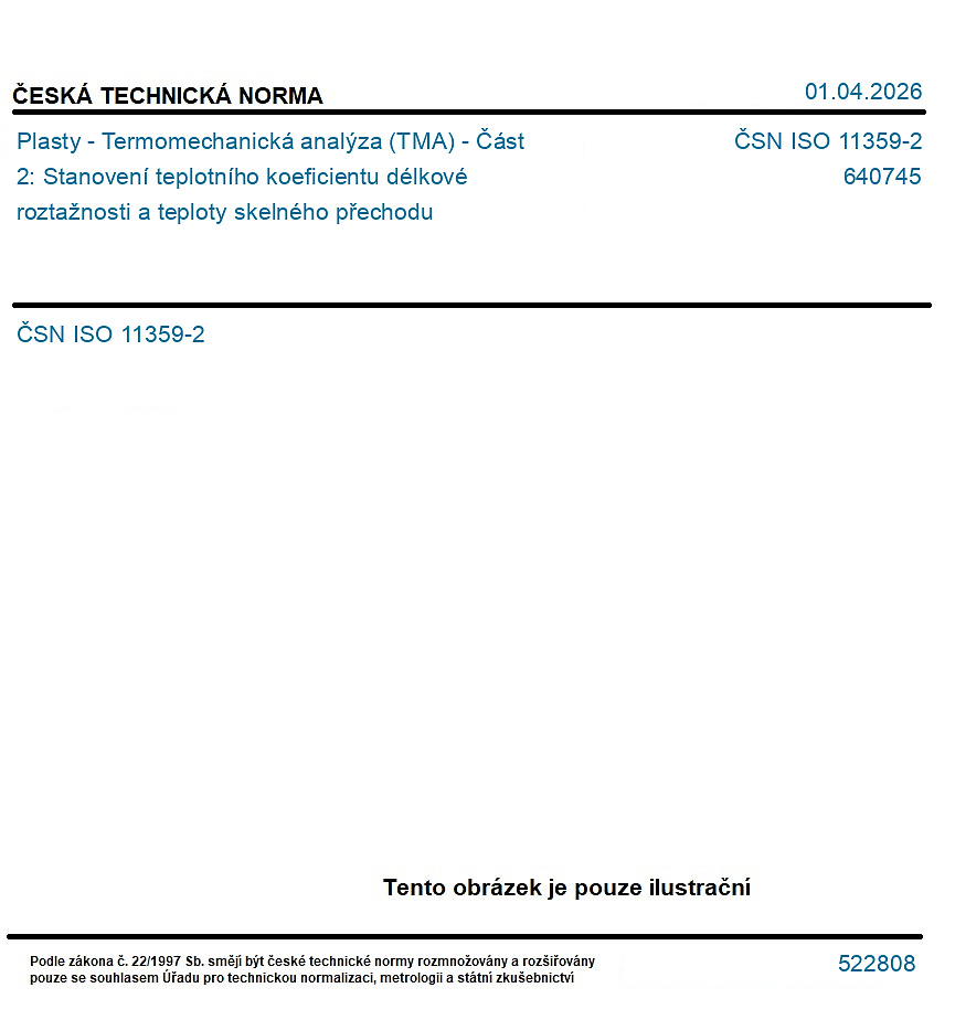 Plasty - Termomechanická analýza (TMA) - Část 2: Stanovení teplotního koeficientu délkové roztažnosti a teploty skelného přechodu