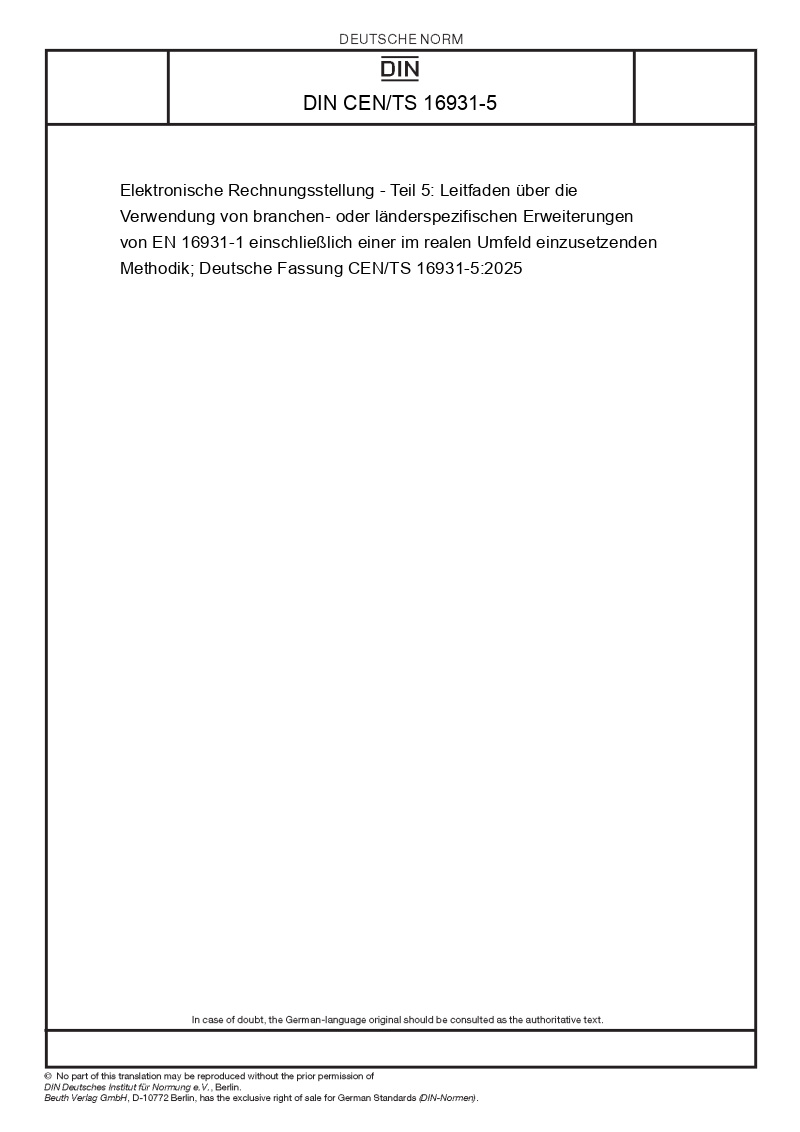 Elektronische Rechnungsstellung - Teil 5: Leitfaden über die Verwendung von branchen- oder länderspezifischen Erweiterungen von EN 16931-1 einschließlich einer im realen Umfeld einzusetzenden Methodik; Deutsche Fassung CEN/TS 16931-5:2025