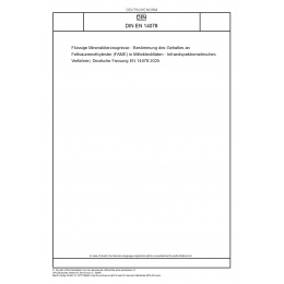 | Název produktu: | Flüssige Mineralölerzeugnisse - Bestimmung des Gehaltes an Fettsäuremethylester (FAME) in Mitteldestillaten - Infrarotspektrometrisches Verfahren; Deutsche Fassung EN 14078:2025 |