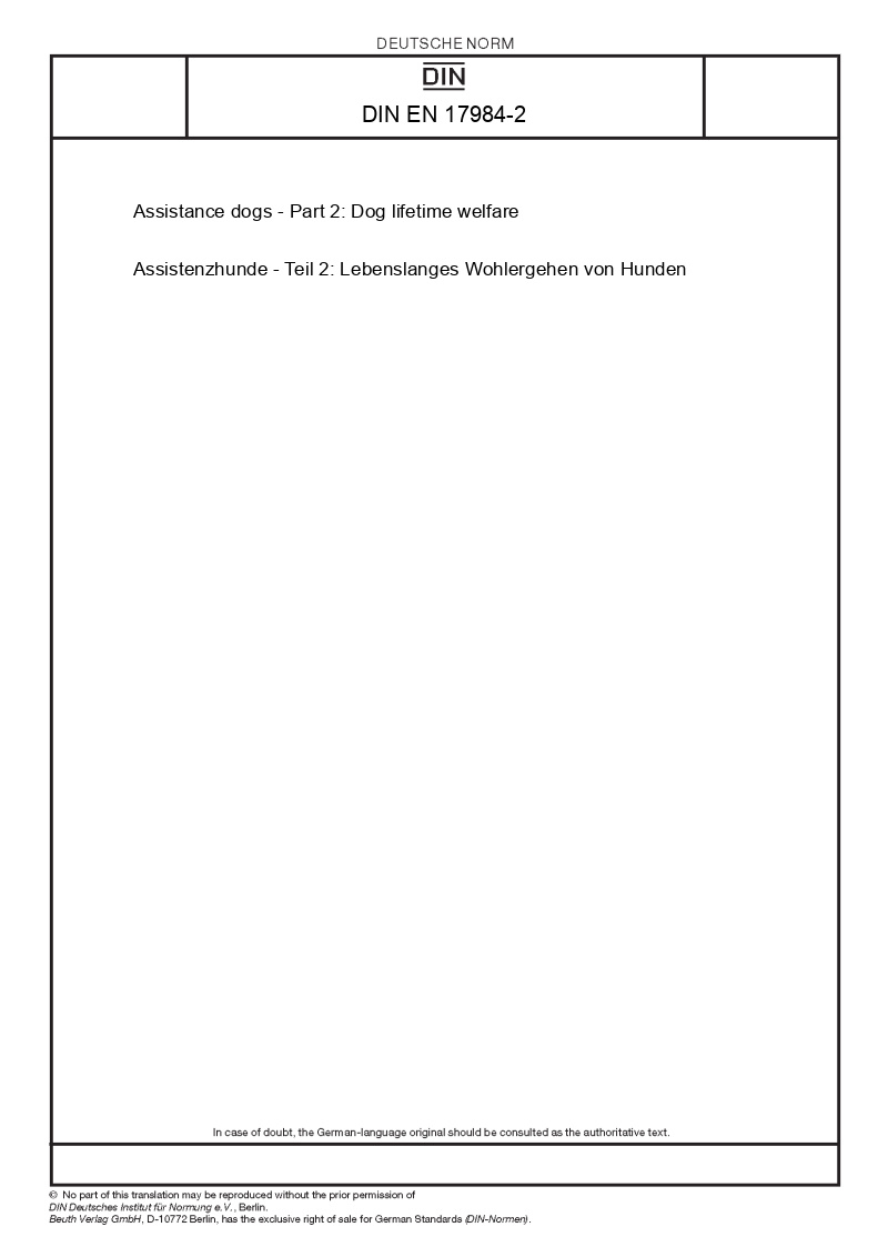 | Název produktu: | Assistance dogs - Part 2: Dog lifetime welfare |
