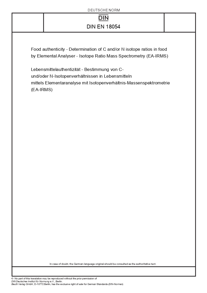 Food authenticity - Determination of C and/or N isotope ratios in food by Elemental Analyser - Isotope Ratio Mass Spectrometry (EA-IRMS)