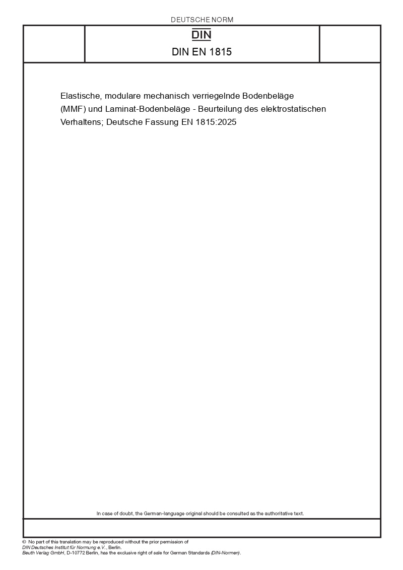 | Název produktu: | Resilient, modular mechanical locked floor coverings (MMF) and laminate floor coverings - Assessment of static electrical propensity |