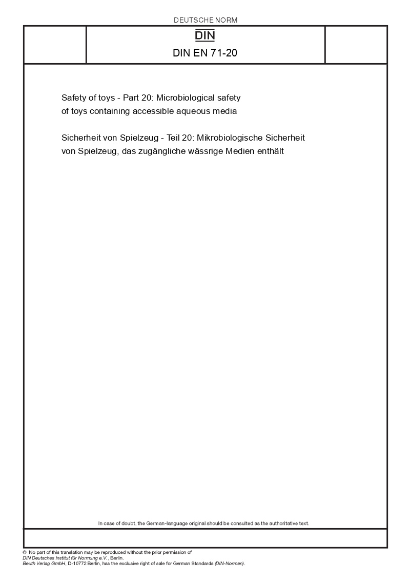 | Název produktu: | Safety of toys - Part 20: Microbiological safety of toys containing accessible aqueous media |