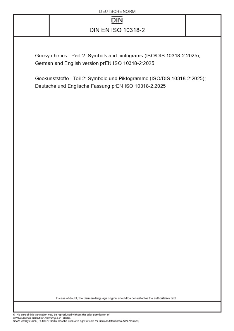 | Název produktu: | Geosynthetics - Part 2: Symbols and pictograms (ISO/DIS 10318-2:2025); German and English version prEN ISO 10318-2:2025 |