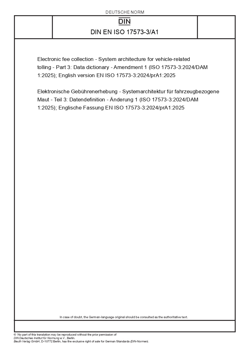 Electronic fee collection - System architecture for vehicle-related tolling - Part 3: Data dictionary - Amendment 1 (ISO 17573-3:2024/DAM 1:2025); English version EN ISO 17573-3:2024/prA1:2025