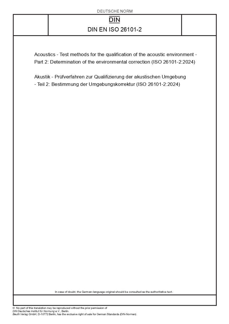Akustik - Prüfverfahren zur Qualifizierung der akustischen Umgebung - Teil 2: Bestimmung der Umgebungskorrektur (ISO 26101-2:2024)