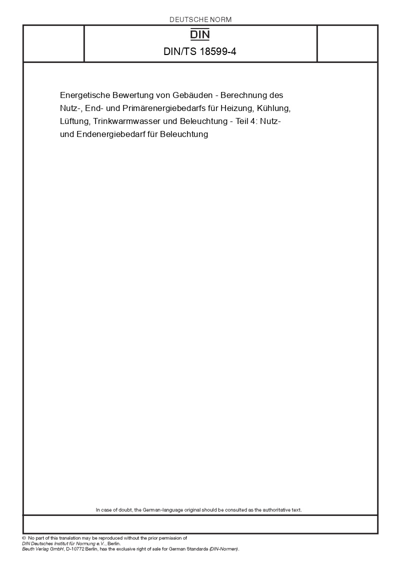 Energetische Bewertung von Gebäuden - Berechnung des Nutz-, End- und Primärenergiebedarfs für Heizung, Kühlung, Lüftung, Trinkwarmwasser und Beleuchtung - Teil 4: Nutz- und Endenergiebedarf für Beleuchtung