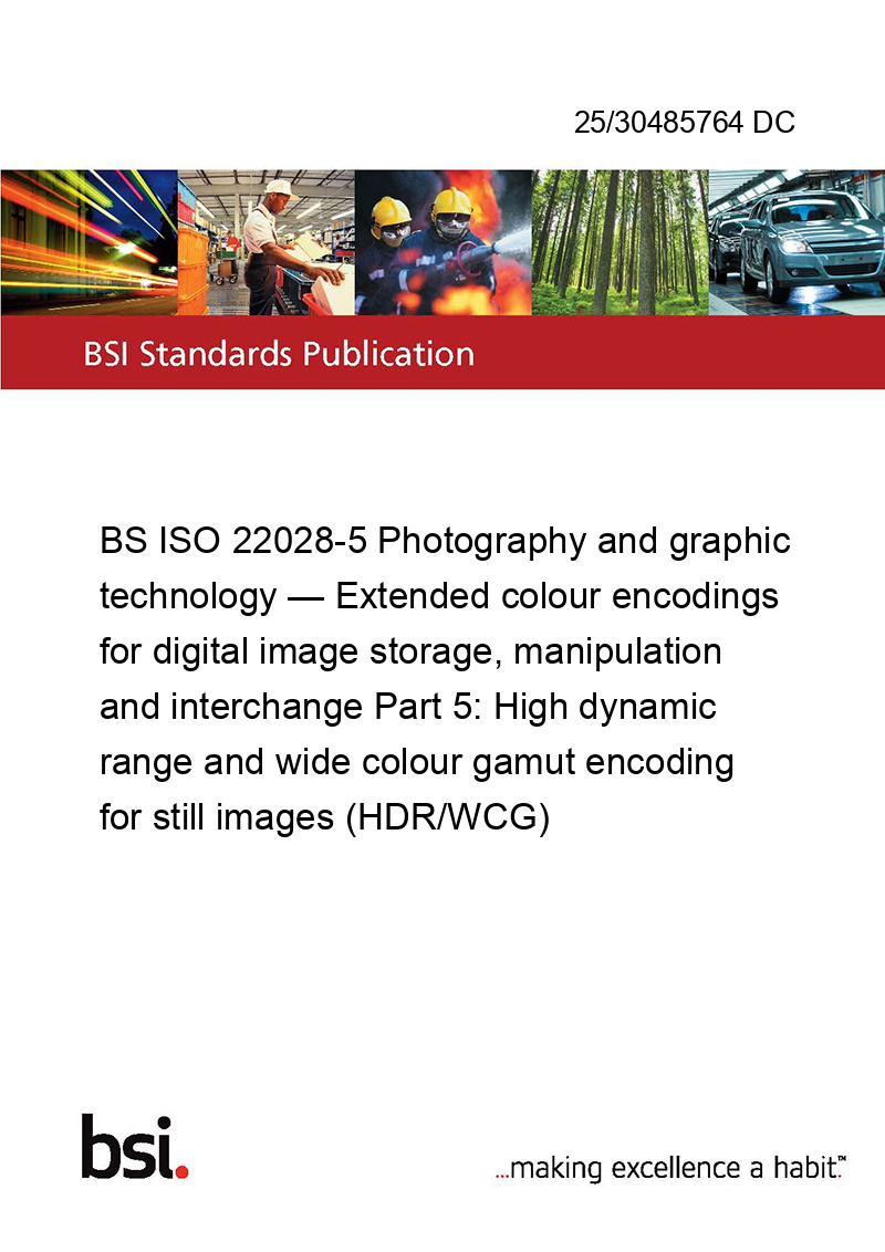 BS ISO 22028-5 Photography and graphic technology — Extended colour encodings for digital image storage, manipulation and interchange Part 5: High dynamic range and wide colour gamut encoding for still images (HDR/WCG)