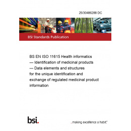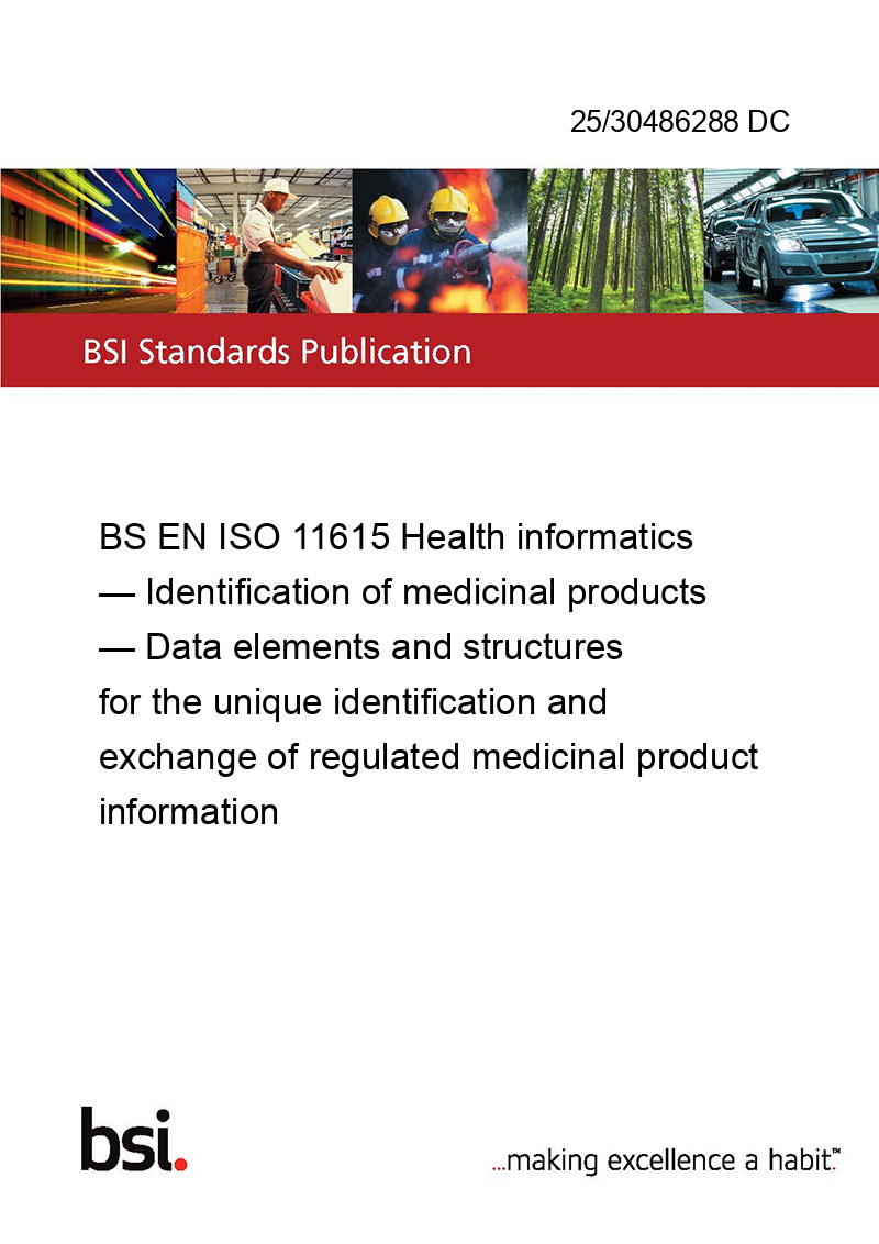 BS EN ISO 11615 Health informatics — Identification of medicinal products — Data elements and structures for the unique identification and exchange of regulated medicinal product information