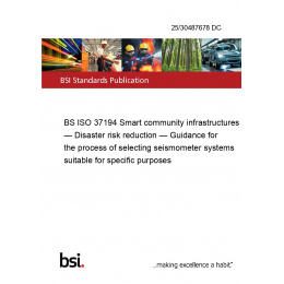 BS ISO 37194 Smart community infrastructures — Disaster risk reduction — Guidance for the process of selecting seismometer systems suitable for specific purposes