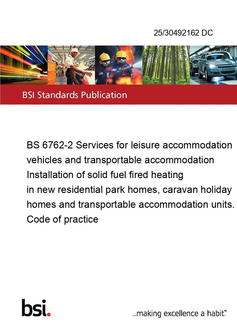BS 6762-2 Services for leisure accommodation vehicles and transportable accommodation Installation of solid fuel fired heating in new residential park homes, caravan holiday homes and transportable accommodation units. Code of practice