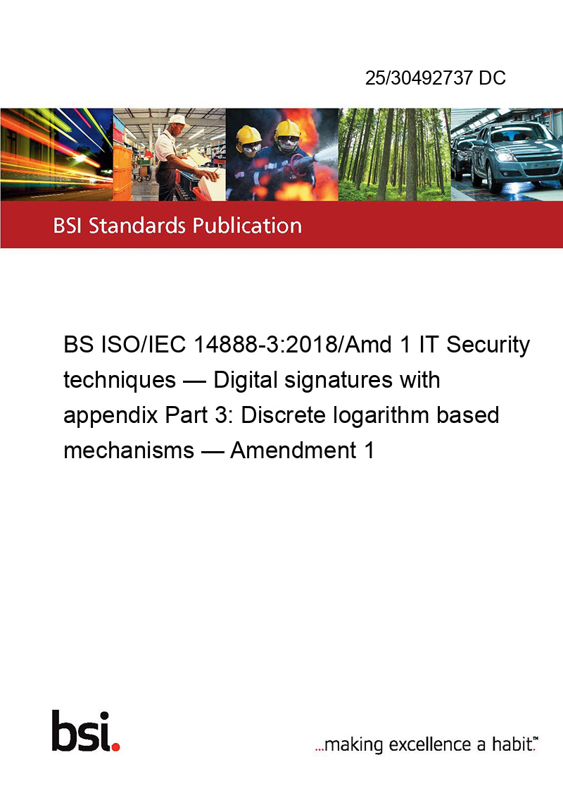 BS ISO/IEC 14888-3:2018/Amd 1 IT Security techniques — Digital signatures with appendix Part 3: Discrete logarithm based mechanisms — Amendment 1